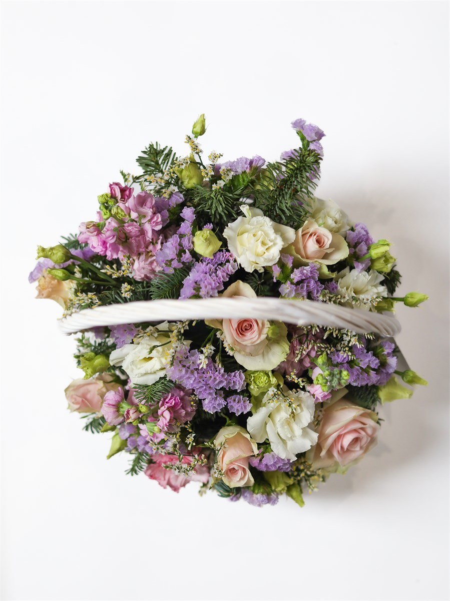 Зима - это волшебное время года, когда люди во всем мире готовятся к празднику, думают о подарках своим родным и близким. Так почему бы в качестве подарка не преподнести композицию в корзинке с ароматными ветками нобилиса? Сочетание нежных оттенков передают ощущение безмятежности и умиротворения, мягкости и легкости. Такая композиция идеально подойдет на подарок молодой девушке, женщине. Сочетание цветов можно изменит по Вашему желанию.